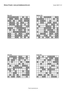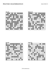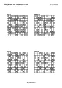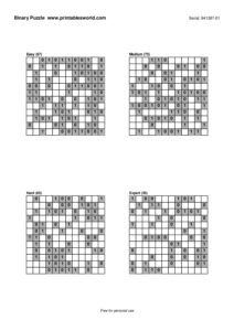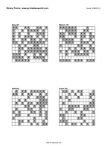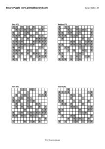 Free Binary Puzzle Printable PDFs (0/1 Logic)
