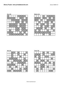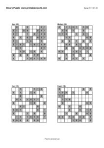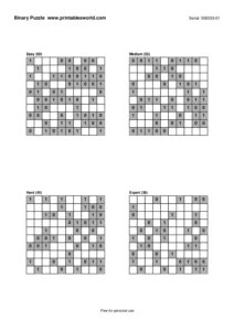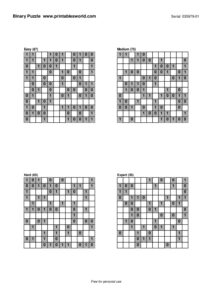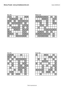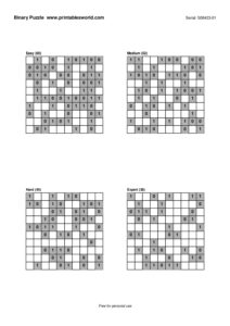 Free Binary Puzzle Printable PDFs (0/1 Logic)