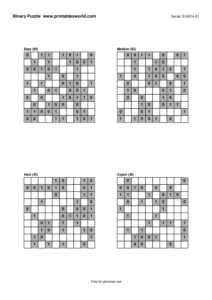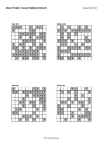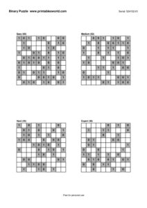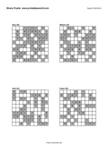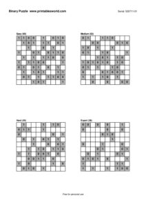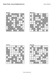 Free Binary Puzzle Printable PDFs (0/1 Logic)