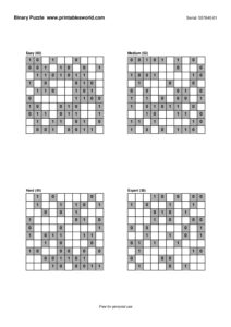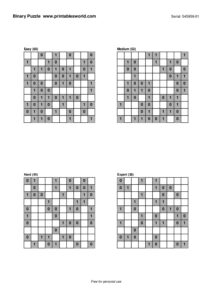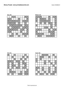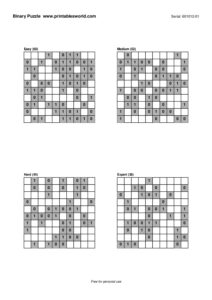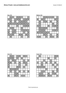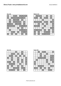 Free Binary Puzzle Printable PDFs (0/1 Logic)